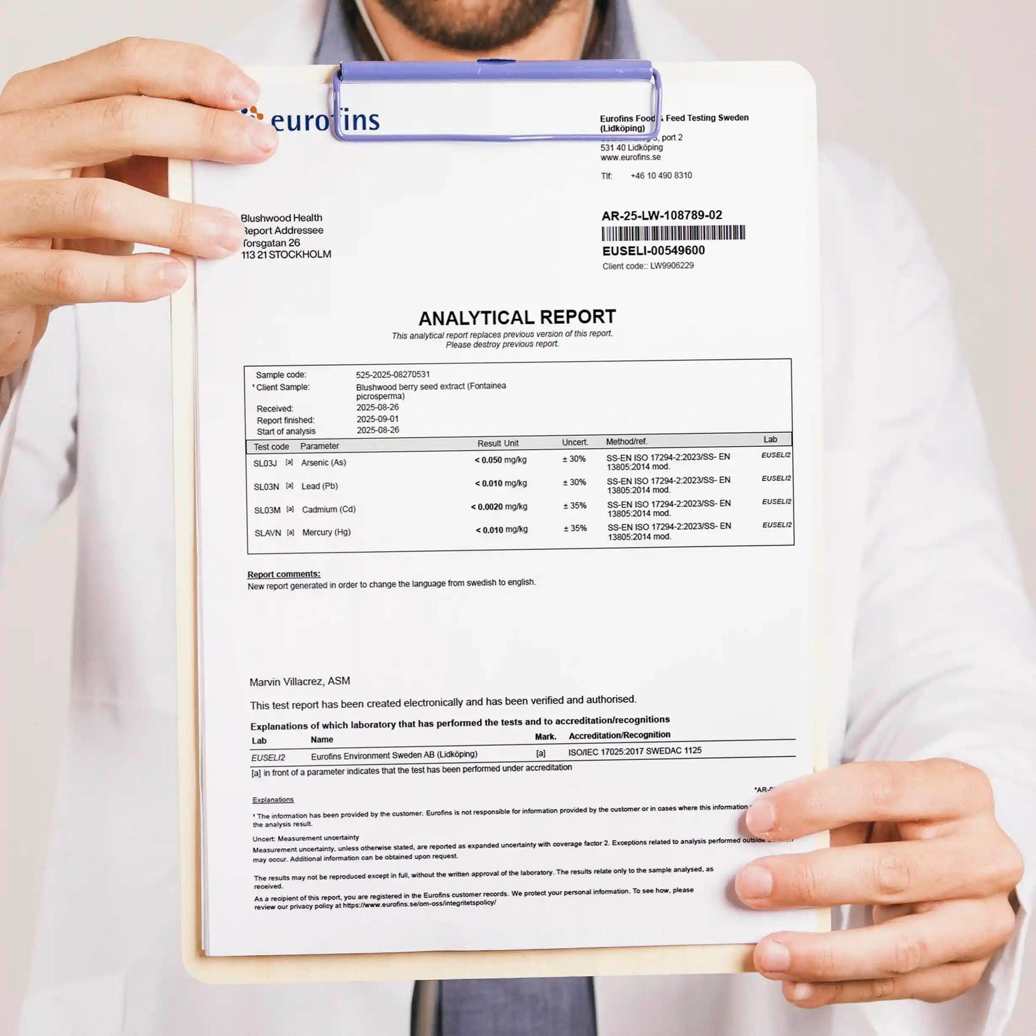 Every batch of Blushwood Health products is independently tested by Eurofins—one of the world's most trusted laboratories—before it reaches you. If a batch doesn't meet our strict standards, it doesn't get released.